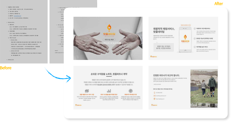 사용목적과 타겟에 맞는 형식을 정확하게 파악하여 기획해 드립니다.